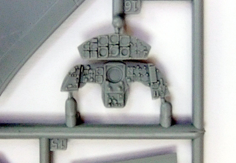 Das Cockpit ist für diesen Maßstab adäquat gestaltet, allerdings vermisst man für das Armaturenbrett zumindest ein paar Decals für die Instrumente. Für den Variantenspezifischen C-2 Schleudersitz ist das Gurtzeug komplett vorhanden.