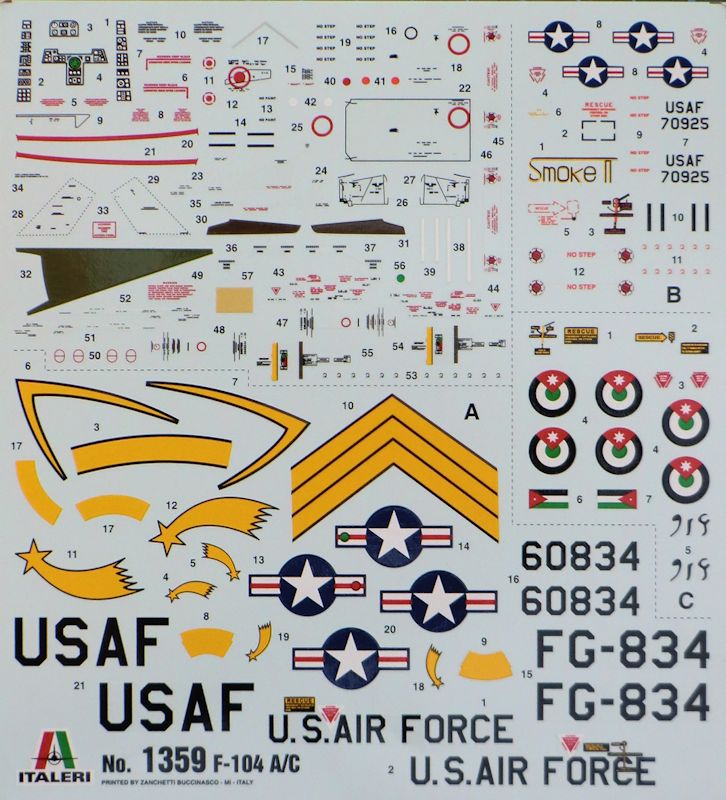Der große Decalbogen wurde tadellos gedruckt. Es gibt eine Menge Wartungshinweise. Die Farbangaben sind für eigenen Farben. Weiterhin gibt es die Nummern aus dem Federal Standard.