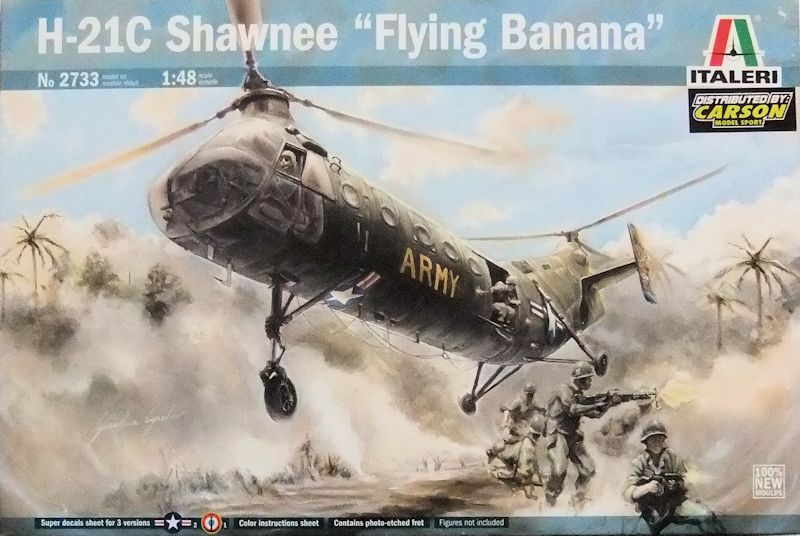 Vorbild: Der Transporthubschrauber wurde 1952 unter der Bezeichnung Vertol Piaseki H-21 in Dienst gestellt. Offiziell wurden Helis des Army Air Corps nach Indianerstämmen benannt, so wie in diesem Falle "Shawnee". Der typische geknickte Rumpf führte jedoch zur populären Bezeichnung: Fliegende Banane. Der geknickte, schlanke Rumpfquerschnitt der H-21, in deren Hinterrumpf der Motor lag, ließ es kaum zu, das in den seitlichen Frachttüren etwas mehr als größere Kisten transportiert werden konnten. So wurde bei der C-Variante am Unterrumpf ein großes, kräftiges Transportgeschirr angebracht. Ferner wurden links und rechts Halterungen versehen, um die Maschinen mit Zusatztanks auszurüsten. Der luftgekühlte Sternmotor Wright R-1820-103 wirkte über Fernwellen auf beide Rotoren.