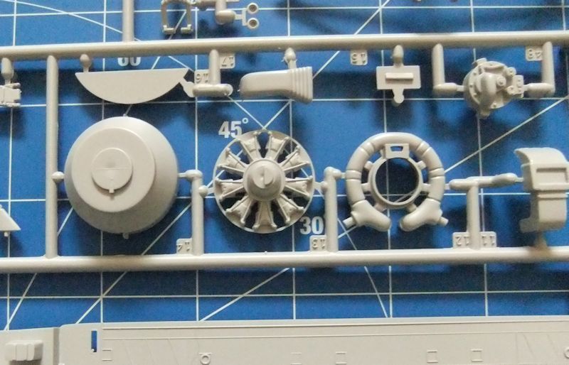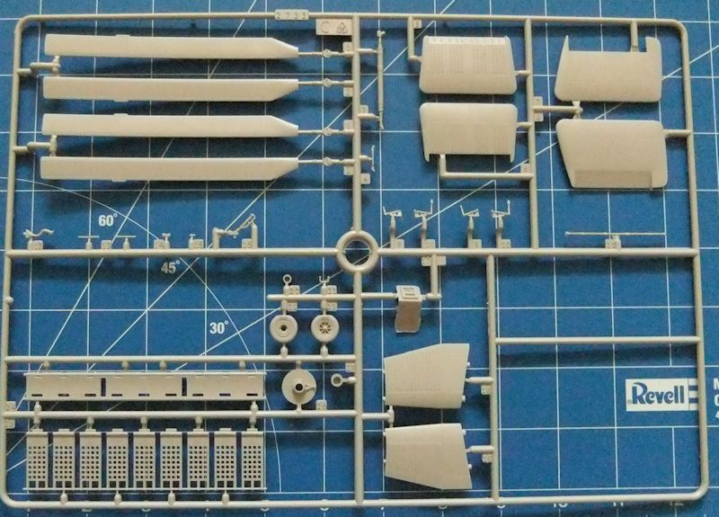 Beim Innenraum hat sich Italeri richtig ins Zeug gelegt. Der Pilotenraum ist vollständig vorhanden, es gibt auch Sitzgurte. Die Deckenverkleidung mit den Oberlichtern fällt angenehm ins Auge. Das gilt auch für die gesamten Trennschotten der einzelnen Rumpfsektionen mit den schallabweisenden Überzügen. Die seitlichen Innenwände des "Helis" hat Italeri vernachlässigt. Das macht sich besonders am Fehlen der markanten Spannten bemerkbar. Die wenigen Andeutungen reichen nur minimal aus. Zumal auch die dicken Auswerferstellen nicht mehr auf Höhe der Zeit sind.