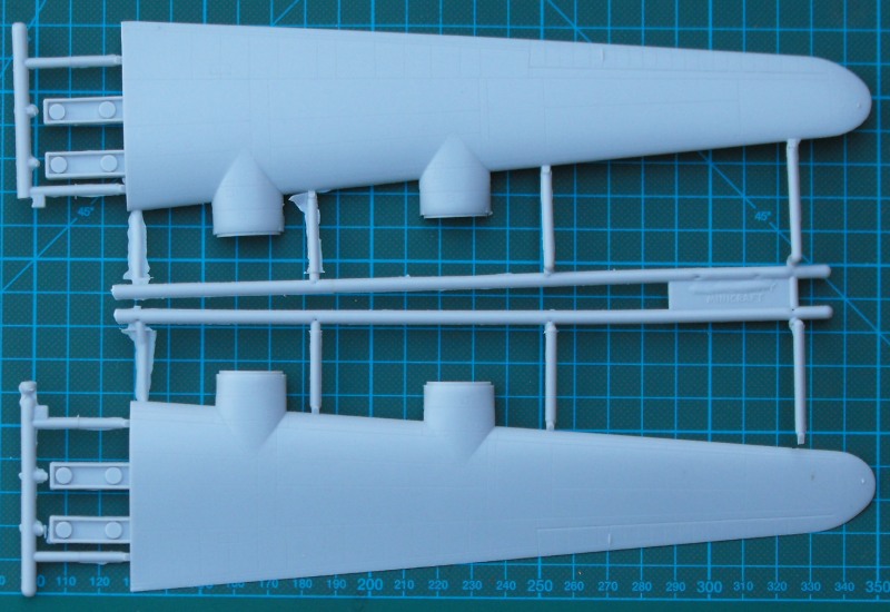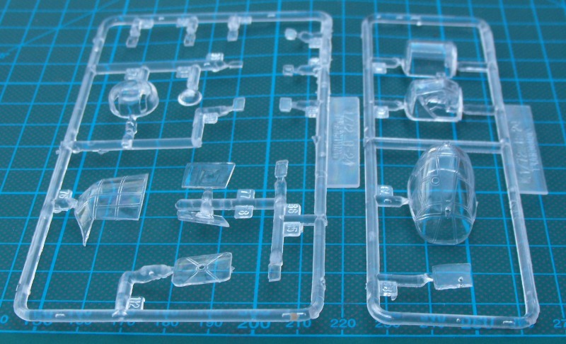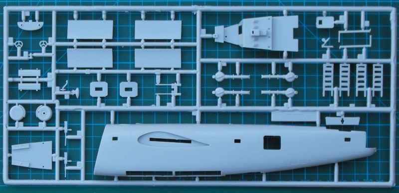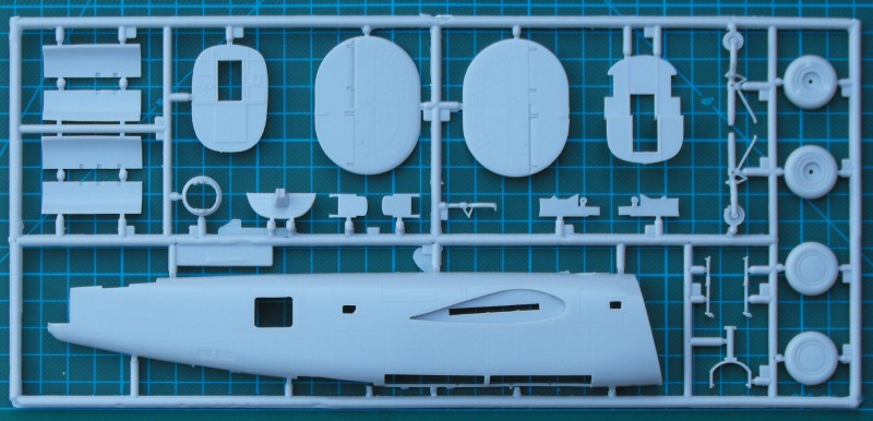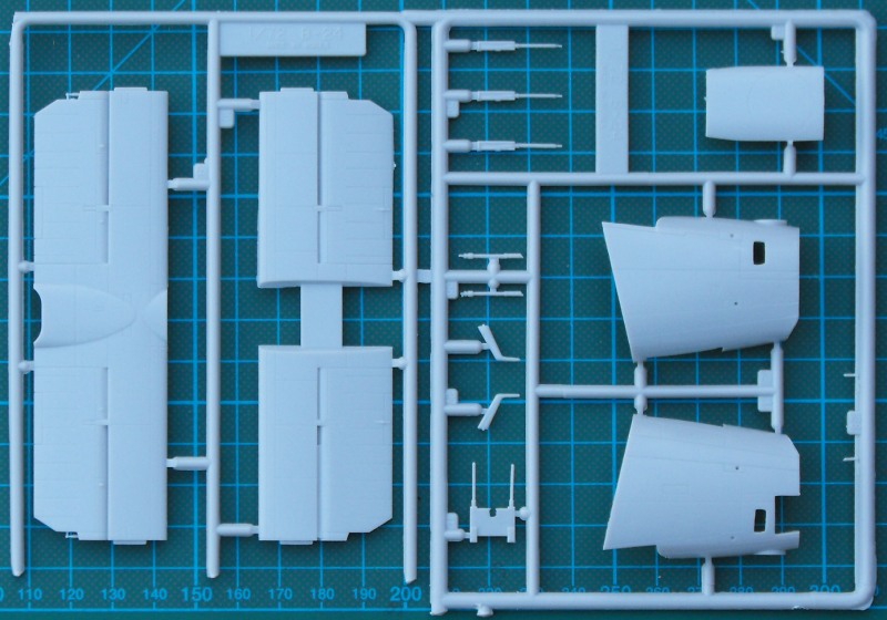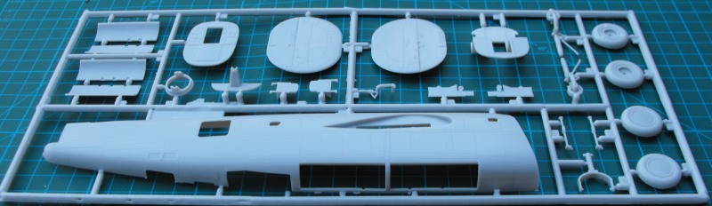 Der Bausatz besteht aus sechs hellgrauen Spritzlingen und den Klarsichtteilen. Ein paar Teile sind für die Restekiste. Gut gelungen sind die feinen Gravuren.