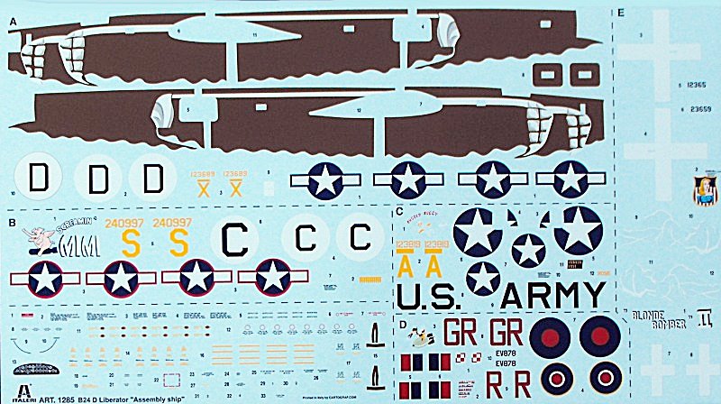 Für den optional offen zu bauenden Bombenschacht gibt es auch die nötige (allerdings rustikale) Innenausstattung nebst Bomben. Einfach gestaltet sind die Waffenstände. Ansonsten gibt es kaum was zum Mäkeln. Dann ist noch da noch der riesige perfekt im Register gedruckte Decalbogen mit außergewöhnlich interessanten Bemalungsmöglichkeiten.