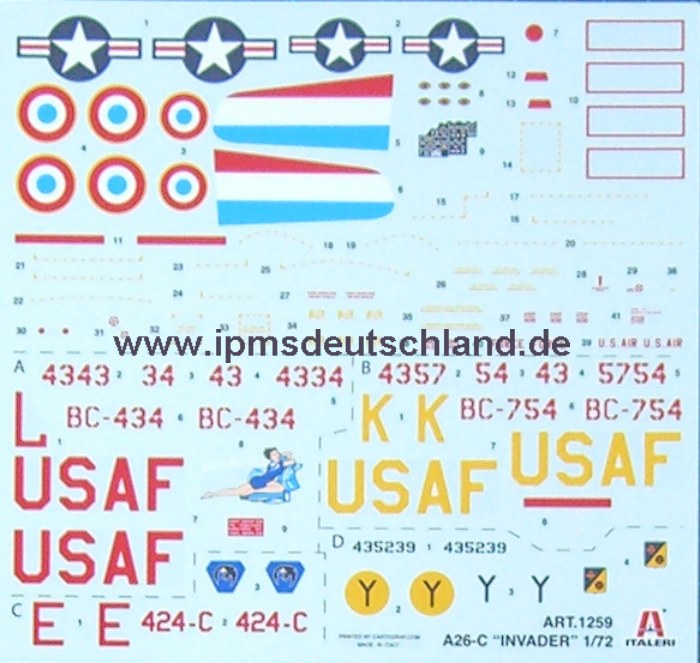 Bausatz: Als Überraschungskit des Jahres 2005 erschien die B-26K in 1:72 bei Italeri. Nun gibt es die A-26C (B-26C) auch von Italeri. Es ist eine Modifikation der bekannten B-26K und der neuen B-26B Kits von Revell. Die Aufteilung der Bausatzteile ließ bei der B-26K erkennen, dass es sicher noch mehr Versionen der Invader geben wird.