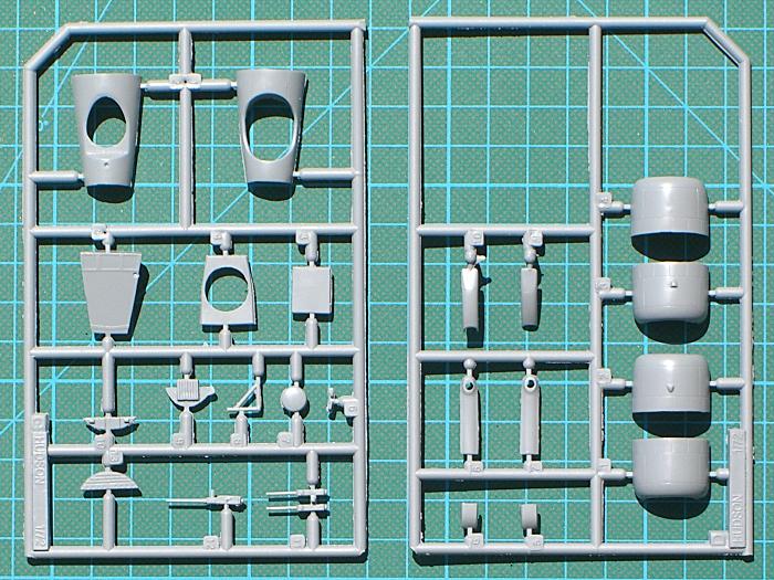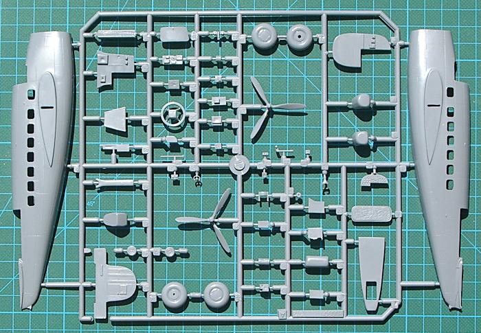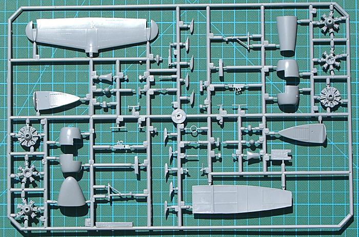 Das Cockpit hat eine Basisausstattung und sollte noch mit Gurten aufgewertet werden. Sicher werden von CMK oder auch Eduard diverse Zurüstsets erscheinen. Im Rumpf müssen noch zwei Öffnungen geschnitten werden - eine für die Astrokuppel und eine weitere für die Tür (je nach Version). Die Rumpfinnenseiten sind strukturiert und für eine bessere Stabilität gibt es einen Holm. Auch hat die Hauptkabine eine Ausstattung. Die Kleinteile sind doch sehr rustikal und sollten ersetzt werden. Die zuverwendenen Motore bestehen aus zwei separaten Sternen. Diese sehen recht ordentlich aus. Weiterhin gibt es eine ordentliche Bauanleitung, die die Montage erleichtert. Die Decals sind seidenmatt gedruckt.
