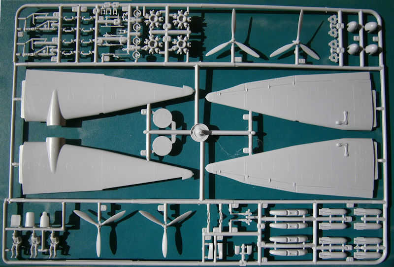 Die verschiedenen Luftschrauben wären zwar sinnvoll doch dürften die VS 111er für die Jumo 213-Triebwerke ruhig noch etwas breitblättriger sein. Auch fehlt dem Spornrad das Schutzblech. Beides kann zusammen mit den weit korrekteren ETCs aber problemlos aus dem Ju 88er Baukasten ersetzt werden. Eine Gravur oder besser noch ein Klarsichtteil für den Deckel der EZB-Peilantenne im Rumpfrücken fehlt jedoch völlig! Eine "Kuto-Nase" wird allerdings mitgeliefert. Die Streben der Kabinenverglasung besitzen wie stets nur recht wenig hervortretende Kanten. Die Bauanleitung erreicht leider nicht einmal DIN A4 Format. Auch wurde hier alles in gerade mal nur vier Bauschritte gezwängt, was Schade ist. Wie gut das es neuerdings ein, geändertes, größere Layout gibt das etwas übersichtlicher zum Ziel führen sollte. Die Vergratung hält sich wie bei Italeri eigentlich immer in Grenzen, jedoch gibt es oberhalb von Passstiften öfters ein paar Sinkstellen. Auswerfermarken sind in Gestalt von ganz feinen Zapfen ebenfalls vorhanden, können aber alle völlig rückstandslos entfernt werden.