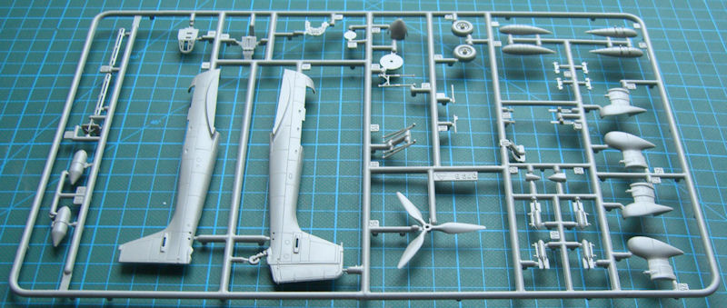 Bausatz: In der attraktiven Schüttbox befinden sich gut verpackt die gut machte Bauanleitung, der umfangreiche Decalbogen, vier Klarsichtteile, zwei Spritzgussrahmen mit 60 Bauteilen. Auf der Kartonrückseite gibt es mehrfarbige Seitenrisse und Hinweise auf Waffensets.
