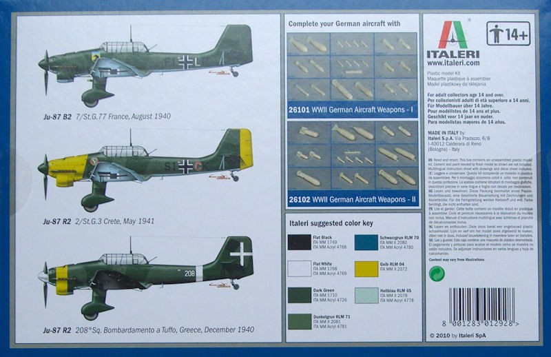 Die Form der Italeri-Stuka stammt aus den 90er Jahren und ist gut detailliert. Vielleicht sind die Kleinteile eine Spur zu klobig. Das Cockpit entsteht aus fünf Teilen. Das klingt wenig. Diese haben es aber in sich. Die Sitzgurte sind gleich auf dem Pilotensitz aufmodelliert. Leider sind die Rumpfinnenseiten etwas nackt. Der Rumpfbug ist ein separates Bauteil. Dadurch konnte Italeri in der Vergangenheit auch andere Versionen verwirklichen. Die Kühlerklappen sind offen dargestellt.