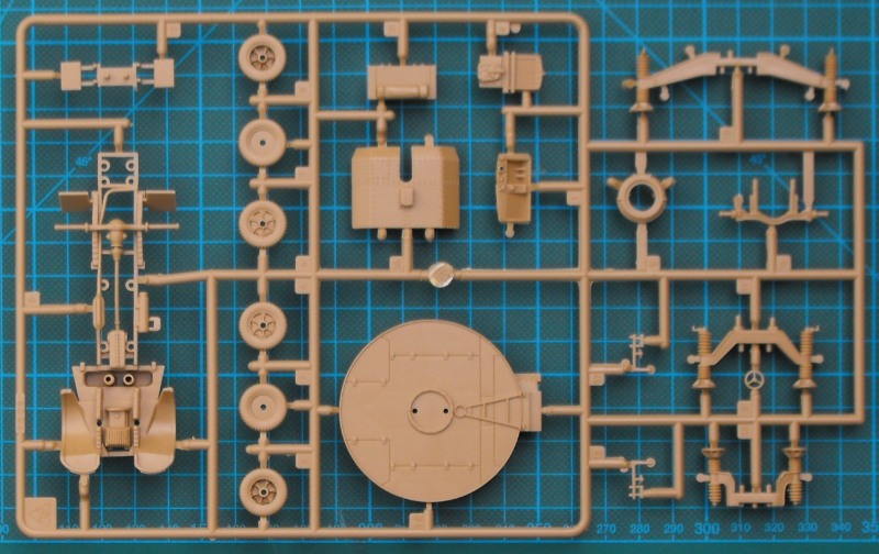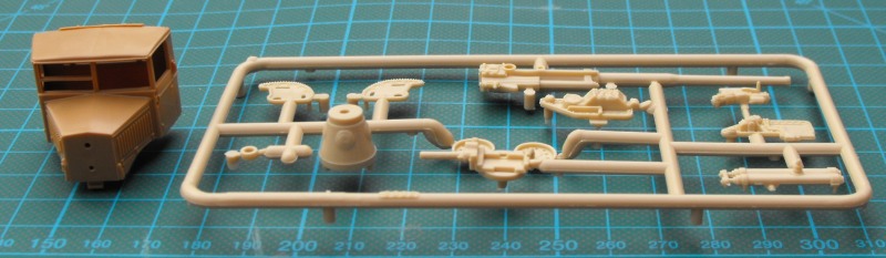Man hat den Eindruck, dass Italeri das DOC-Modell als Basis benutzt hat. Einige Bauteile wurden aber vereinfacht und zusammengefasst. Die Detaillierung ist sehr ansprechend. Allein die Flak besteht aus neun Bauteilen. Das Führerhaus ist auch wie bei DOC einteilig. Man hat bei Italeri auch die Spiegel und Winker nicht vergessen.