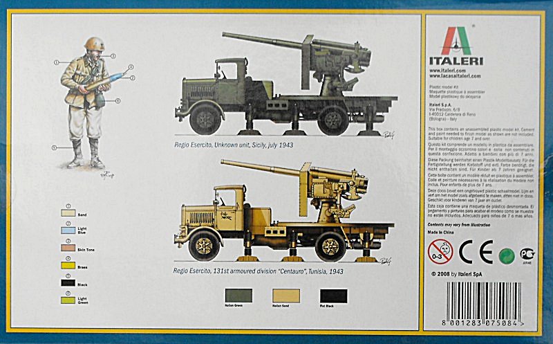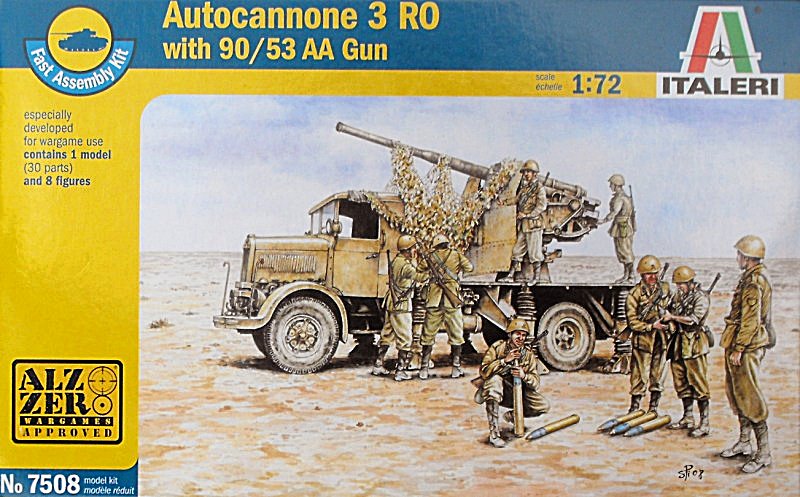 Vorbild: Der Lancia 3RO war ein schwerer Einheits-Lkw der italienischen Armee im WK II. Er wurde ab 1939 eingeführt. Nach dem Abfall Italiens von der Achse fuhren die Lancia auch bei der Wehrmacht. Der Lkw besaß einen 5-Zylinder Dieselmotor mit 93 PS. Einige Fahrzeuge bekamen die Flak 90/53 und wurden sehr effektiv gegen gepanzerte Ziele eingesetzt. Die Kanone war das Gegenstück zur deutschen 8,8 cm Flak.