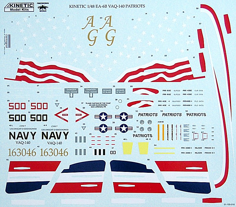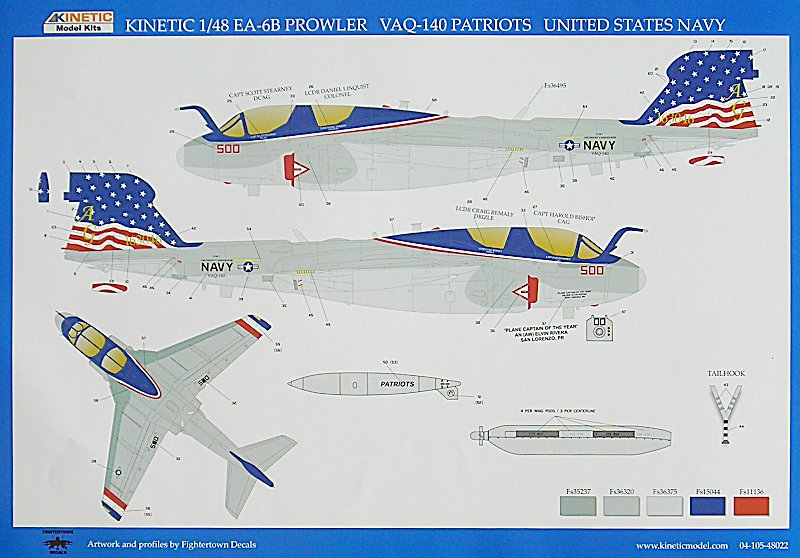 Figther Town zeichnet wieder für das Design der bei Cartograf gedruckten Nassschiebebilder verantwortlich. Es kann eine sehr amerikanische Bemalungsvariante des Commander Air Group der VAQ-140 „Patriots“ umgesetzt werden. Diese stimmt übrigens nicht mit dem Titelbild überein, was dort auch angegeben ist.