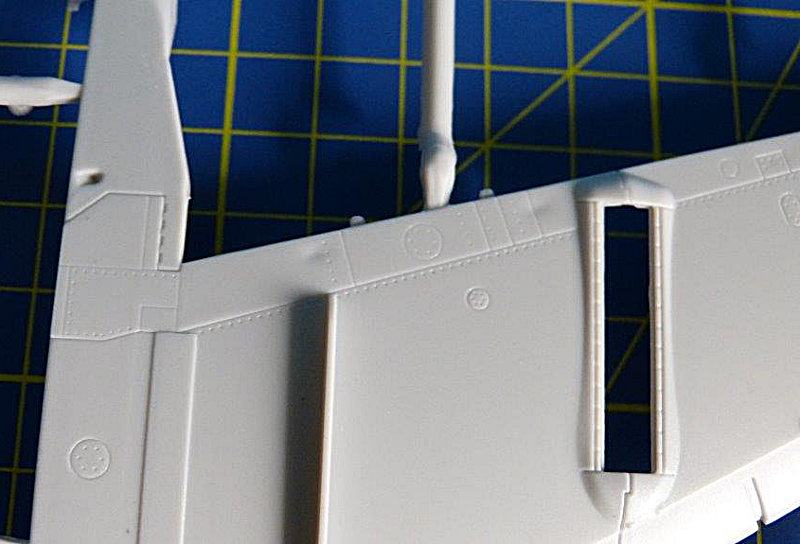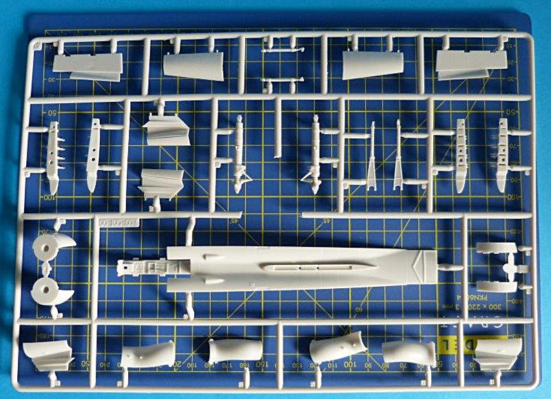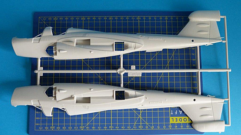 Der Rumpf besticht durch feine Gravuren und Blechstöße. Einige Details mögen etwas grob erscheinen, aber mit Farbe auf dem Modell fallen diese nicht mehr ins Gewicht. Alle Bauteile weisen eine gute Detaillierung auf. Wie fast bei allen Flugzeugmodellen beginnt der Bau des Bausatzes mit Cockpit. Dieses ist ausreichend detailliert, könnte aber durch einige Ätzteilsätze, wie sie die Firma Eduard im Programm hat, noch um einiges verbessert werden. Auch die guten Bausatz Schleuder-Sitze (Martin-Baker GRUEA-7) könnten eine weitere Aufwertung durch Sitzgurte vertragen.