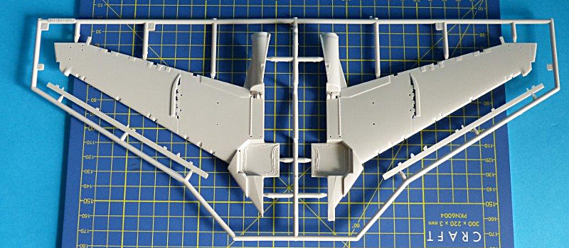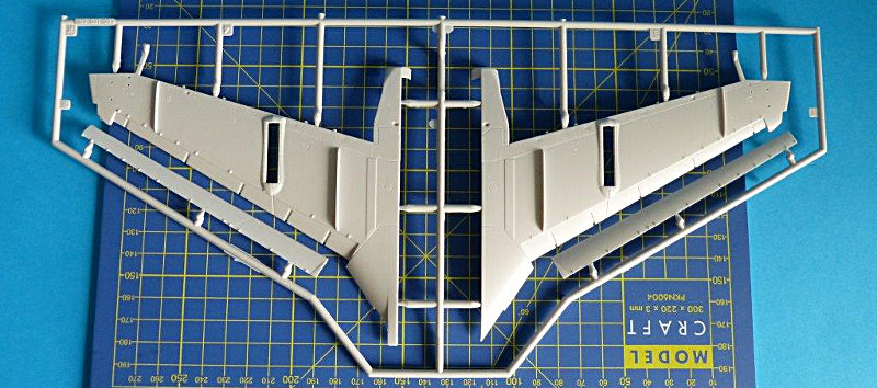 Da das Modell der Prowler schon im Maßstab 1:48 eine beachtliche Größe aufweist stellt sich die Platzfrage. Daran hat Kinetic gedacht und stellt dem Modellbauer zwei Optionen zur Wahl: die Flügel im Flugzustand ausgeklappt oder wie auf einem Flugzeugträger der US. Navy platzsparend das Tragwerk nach oben zusammengeklappt. Der Klappmechanismus dieser Tragflächen ist gut wiedergegeben worden. Soll das Modell im Flugzustand dargestellt werden, können alle Klappen wie Vorflügel, Luftbremsen und Landeklappen in eingefahrener oder ausgefahrener Position gezeigt werden.