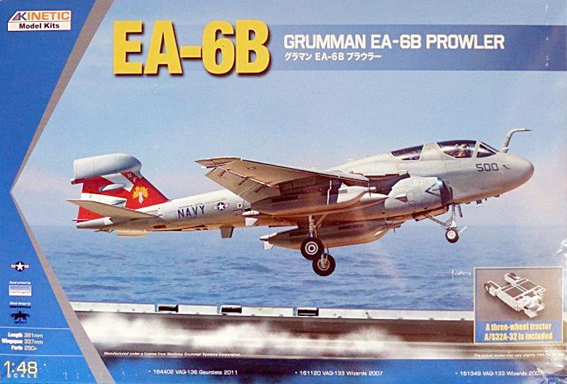 Fazit: Mit dem Bausatz des „Prowler“ von Kinetic erhält man einem sehr guten Spritzgußkit dieses Elektronischen Störflugzeuges der US Navy. Die Detaillierung ist als gut zu bezeichnen. Erfreulich ist die Zugabe eines Zugfahrzeuges, welches auch gut in ein Diorama zusammen mit der EA-6B Prowler passt. Im Maßstab 1:48 macht der Bausatz aufgrund seiner Größe schon einiges her. Hier sollte man schon zugreifen wenn man ein Faible für moderne Kampfflugzeuge der US Navy hat. Mit knapp 48 Euro ist man dabei. Es lohnt sich.