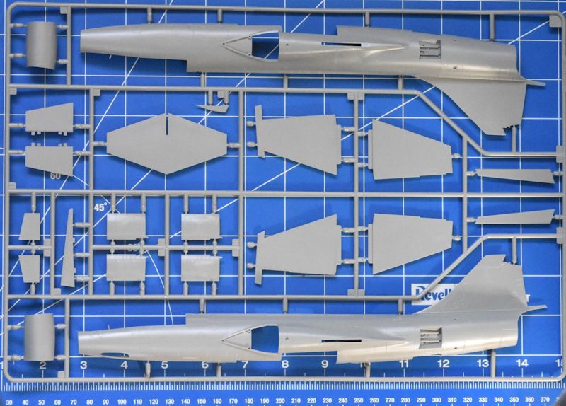 Für die "Clean-Konfiguration" ohne Außenlasten liegen dem Kit Photoätzteile für die Flügelaußenkante bei. Um eine möglichst hohe Zahl von Abspritzungen zu erreichen sind einige Details relativ dick gestaltet wie z.B. die Stabflossen der Tanks oder das Staurohr. Grundsätzlich sehen Jets mit gedrehtem Messingpitotrohr an der Radarnase besser aus als bei einer Verwendung der Bausatzteile. Das derzeit einzig angebotene Messingrohr von "Master" ist für den Nasenkonus von Hasegawa ausgelegt. Zum Verbau in diesem Kit muss der Nasenkonus mit Bausatz-Pitot komplett montiert, verschliffen und anschließen an der Pitot-Basis passend abgeschnitten und aufgebohrt werden.
