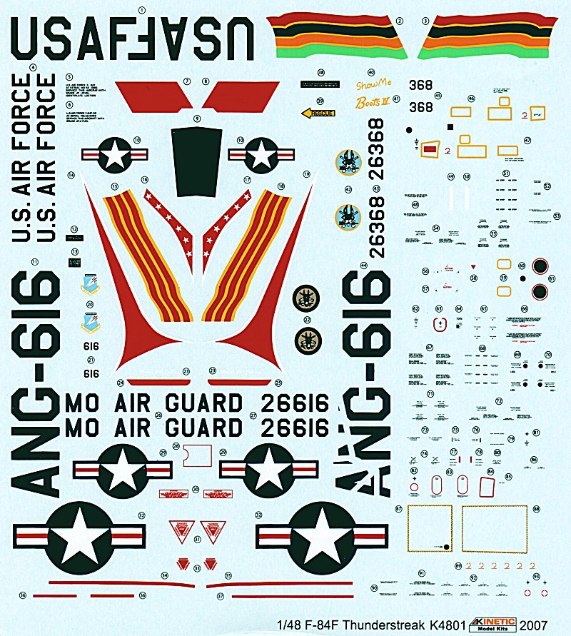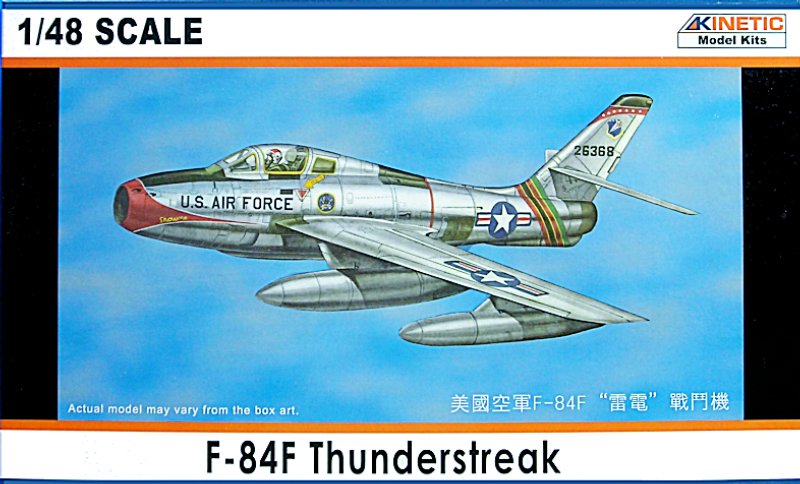 Vorbild: Die Republic F-84 "Thunderjet" wurde gegen Ende des Zweiten Weltkrieges als strahlgetriebenes Jagdflugzeug für die USAAF zunächst unter der Bezeichnung P-84 konstruiert. Mit der Einführung des USAF-Bezeichnungssystem änderte sich die Bezeichnung in F-84. Der Jungfernflug des Prototyps fand 28. Februar 1946 statt und das Flugzeug wurde bis 1953 in einer Stückzahl von ca. 4.450 produziert.