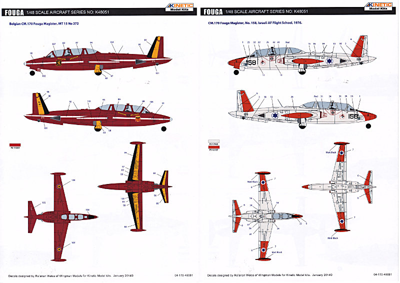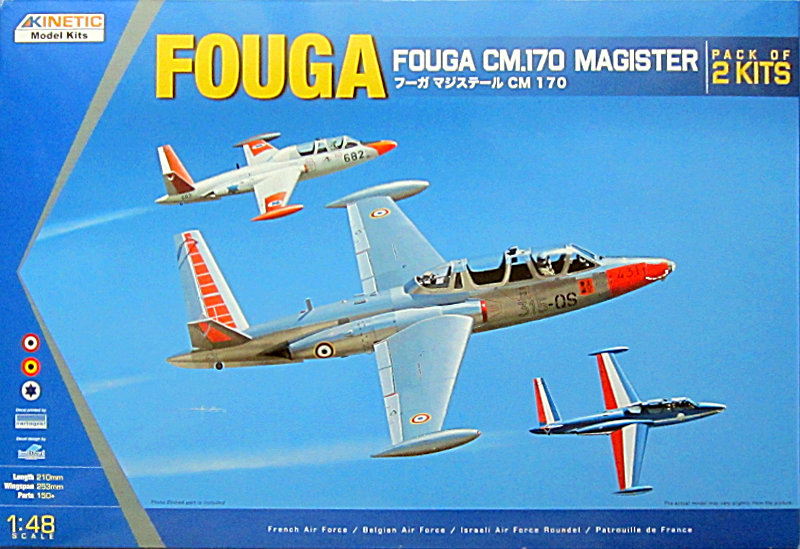 Vorbild: Die CM.170 Magister ist ein zweistrahliges Schulflugzeug aus französischer Produktion. Produzent war der Flugzeughersteller Fouga, die in den 1970er Jahren in der Aerospatiale aufging. Auch der heute nicht mehr bestehende französische Flugzeughersteller Potez fertigte eine Anzahl Maschinen dieses Typs. Als Strahltrainer war die Fouga Magister das zweite düsengetriebene Schulflugzeug der Welt nach der Fokker S.14 Machtrainer. Die Maschine war auch einsetzbar als leichtes Aufklärungs- bzw. Kampfflugzeug.