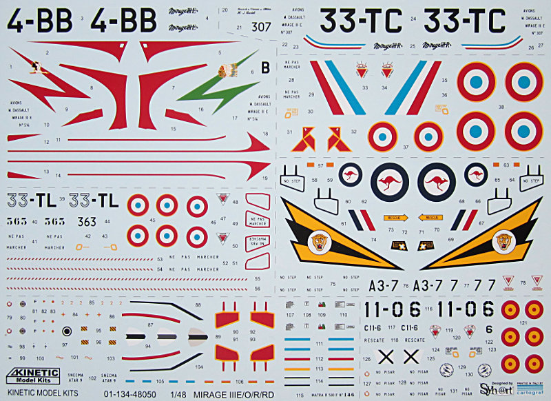 Bausatz: Kinetic setzt die Reihe von "Austauschmodellen" fort, und erlaubt mit diesem Bausatz erstmals den Bau diverser Untervarianten der Mirage III, die bisher nur durch Umbauten realisiert werden konnten. Sicherlich werden sich besonders die Aussies über "ihre" Mirage freuen. Für mich ist noch mehr der bei Wingman Models avisierte Nesher/Dagger/Finger Bausatz von Interesse (derzeit noch mit Preorder-Preis!), der auf diesem Bausatz beruht.