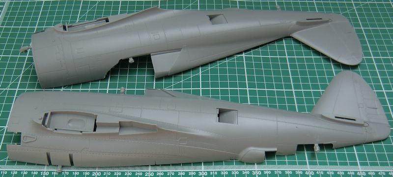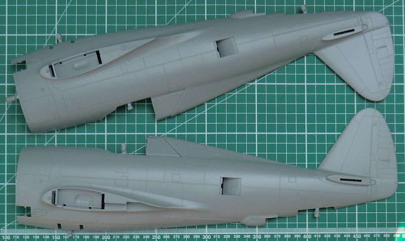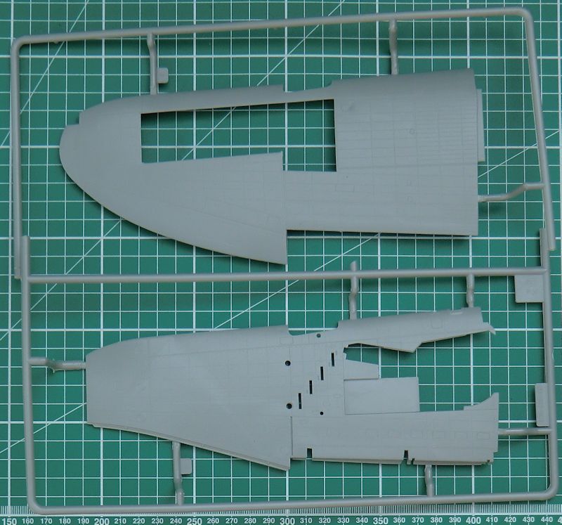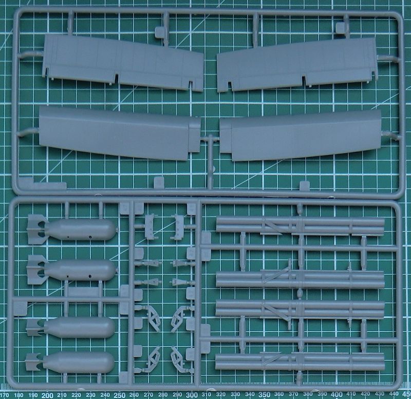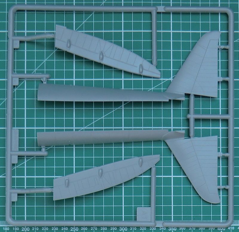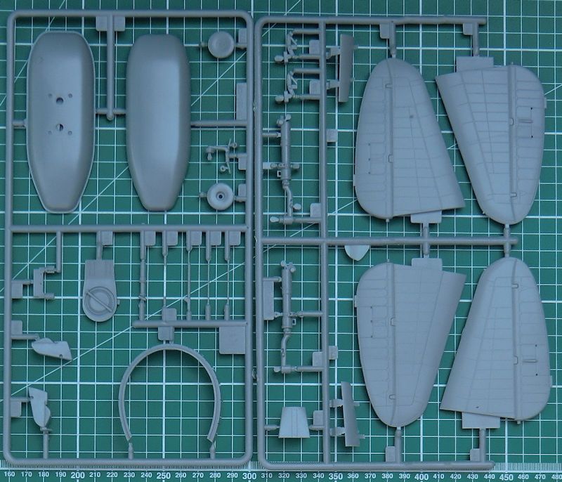 Für die Montage der Tragfläche gibt es zwei Holme. Das bringt auch Stabilität in die Konstruktion. Der Rumpf ist neu und man hat auch die unterschiedlichen Strukturen auf den Seiten beachtet. Das Seitenruder ist starr. Dieses war bei der späten Variante noch beweglich gestaltet. Allerdings ist das Höhenruder nur starr in Normalstellung anzukleben. Dafür können diverse Klappen alternativ geöffnet oder geschlossen dargestellt werden.