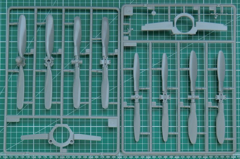 Unter die Tragflächen kann man diverse Tanks, Bomben usw. hängen. Hier sollte man sich über sein Vorbild informieren. Das gilt natürlich auch für den Propeller. Hier gibt es die von Curtiss und Hamilton. Die Bauanleitung hilft hier leider nicht weiter, man hat diesen Bereich bei Kinetic leider nicht geändert…