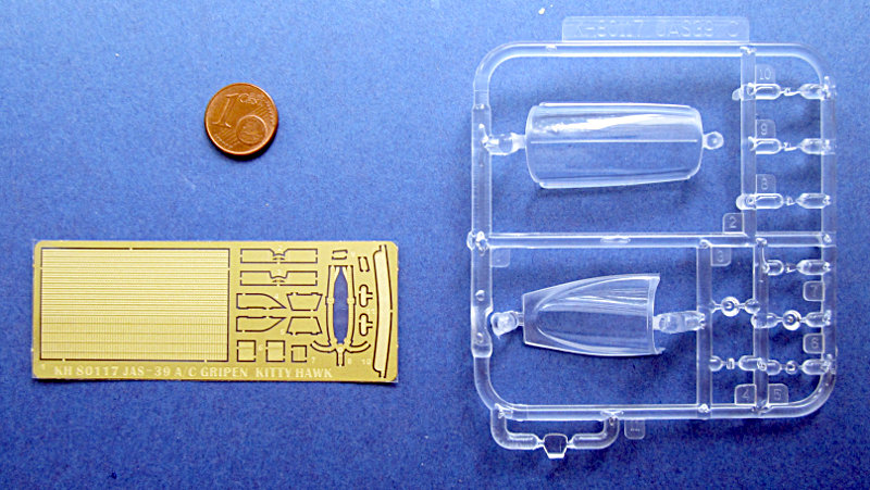 Bausatz: Die noch junge Firma KittyHawk legt beim herausbringen neuer Bausätze ein ganz schönes Tempo vor. Nach der absoluten Formneuheit F-94 Starfire hat sich die chinesische Firma auf das "ersetzen" älterer Bausätze verlegt. Neben der F-35 betraf dies auch die Mirage F.1 und den SEPECAT Jaguar. Nun ist also die JAS-39 Gripen dran. Der recht kleine, ansprechend gestaltete Stülpkarton ist wieder gut gefüllt und der erste Eindruck ist recht gut.