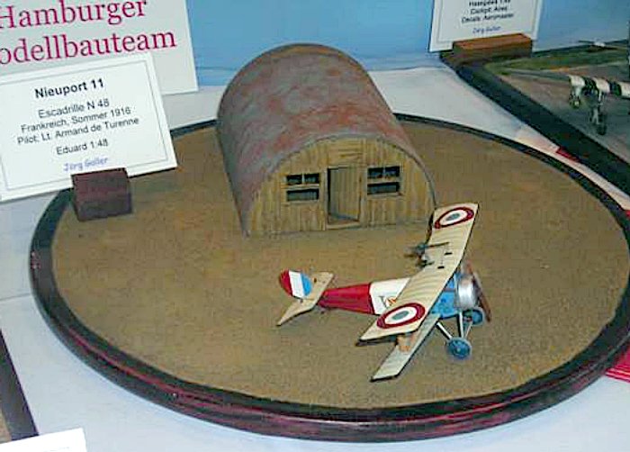Szenisch war die Nissenhütte auf der Ausstellung mit einem französischen Flugzeug gezeigt wurde. Denkbar ist z.B. aber auch eine Verwendung im vietnamesischen Dschungel. Ein wenig Bildrecherche kann hier noch viel mehr Ideen zu Tage fördern.