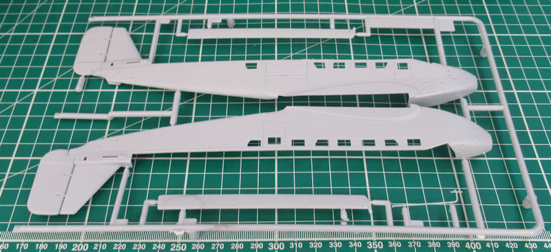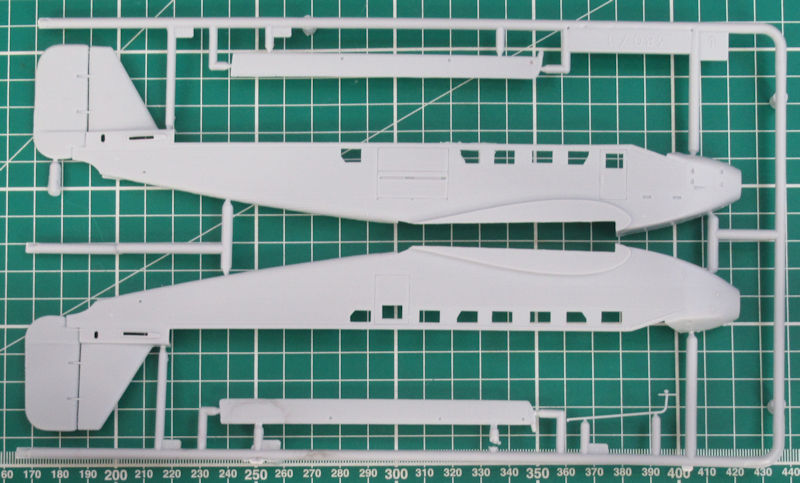 Bausatz: Das war eine Überraschung als KP eine Junkers Ju 52/3m in 1/72 angekündigt hatte. Es war schnell klar: Das ist der sehr gelungene Heller-Kit in neuen Schläuchen. Mir persönlich gefällt die französische Interpretation sehr gut und so findet man in dem attraktiven praktischen Stülpkarton acht hellgraue Spritzgussrahmen mit 92 Teilen, ein Klarsichtrahmen mit neun Teilen, ein Decalbogen und die mehrfarbige Bau- und Bemalungsanleitung.