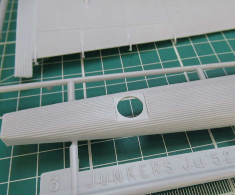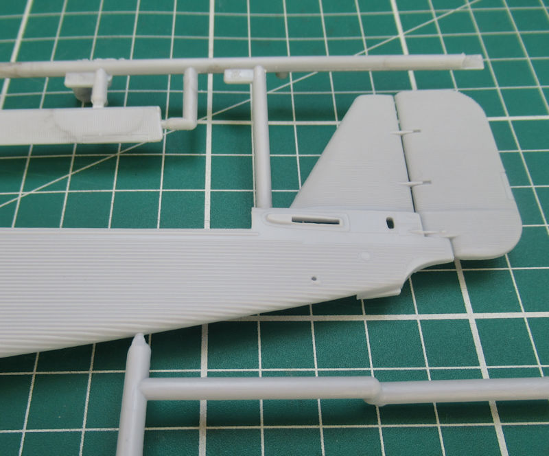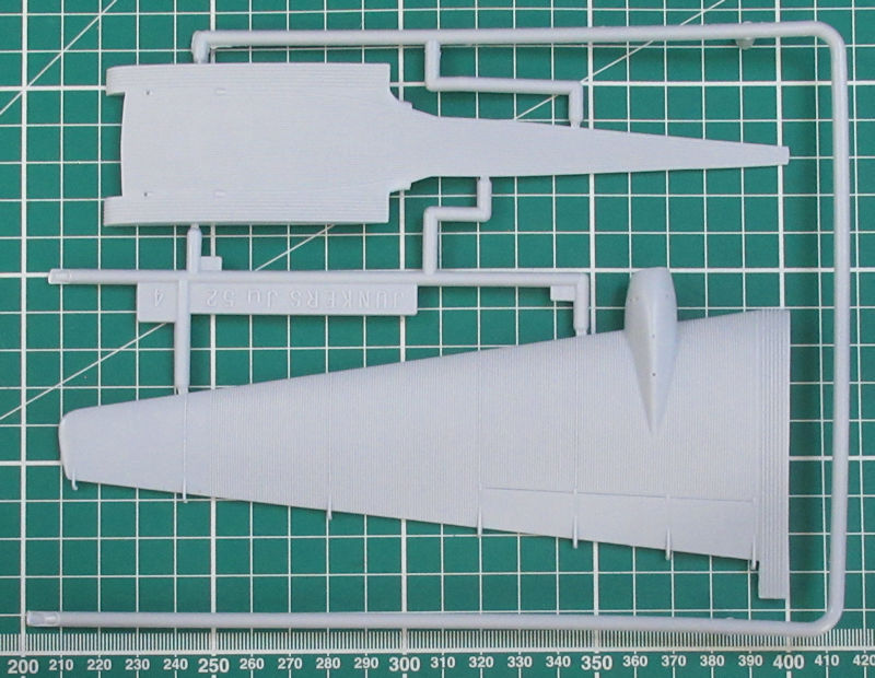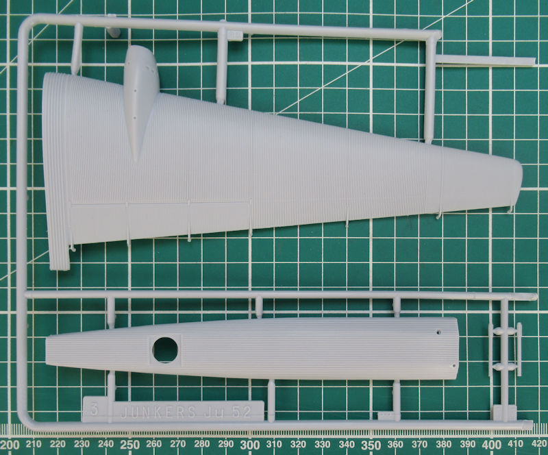 Immerhin erschien der neueste Bausatz der Ju 52 in 1/72 schon 1979. Heller hatte damals einen sehr guten Job gemacht. So gibt es sehr schöne Strukturen. Mir gefallen hier die große Ladeluke auf der Steuerbordseite und der Übergang vom Seitenleitwerk zum eigentlichen Ruder. Heller hat die Wellblechstruktur sehr gut getroffen.