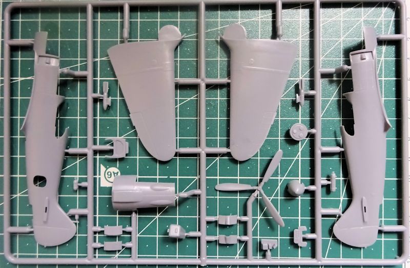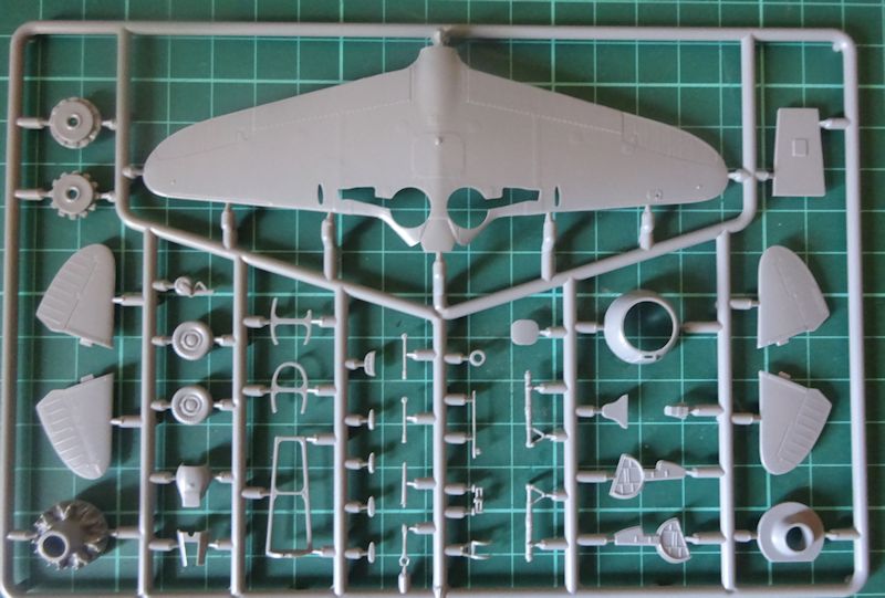 Die rund 50 Teile sind sauber abgespritzt, klar und dezent ausgeführt. Das Cockpit ist ausreichend und die Rumpfinnenseiten vorbildlich detailliert. Der am Brandschott angegossene Motor ist zwar nicht mehr auf der Höhe der Zeit, kann aber verschmerzt werden da er hinter der Motorhaube verschwindet bzw. nicht verwendet wird.