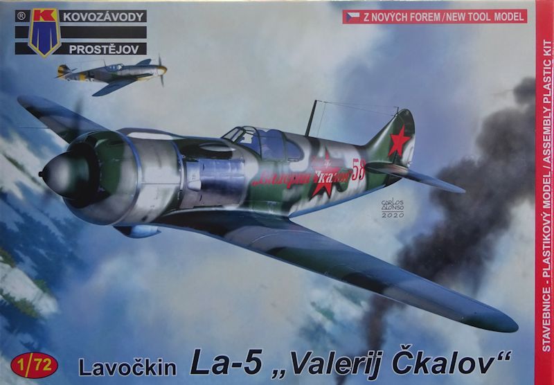 Bausatz: Bisher gab es die La-5 von VES (1993, später bei Cooperativa und Gran) und AML (2008). jetzt kommen gleich zwei neue auf den Markt. Clear Prop startet mit der ersten Serie und KP legt mit der Endserie nach. Der attraktive aber unpraktische Faltkarton enthält zwei graue und einen klaren Spritzling, Anziebilder sowie eine Bauanleitung.