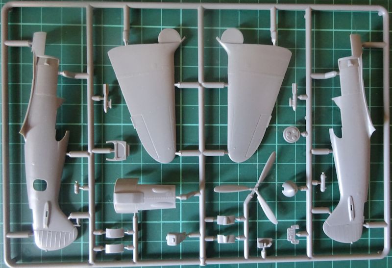 Die rund 50 Teile sind sauber abgespritzt, klar und dezent ausgeführt. Das Cockpit ist ausreichend detailliert. Kleines Manko: die in der Bauanleitung angezeigten Abziehbilder für die Instrumente und Sitzgurte fehlen leider auf dem Abziehbilderbogen. Dafür sind die Rumpfinnenseiten vorbildlich strukturiert. Der am Brandschott angegossene Motor ist zwar nicht mehr auf der Höhe der Zeit, kann aber verschmerzt werden da er hinter der Motorhaube verschwindet.