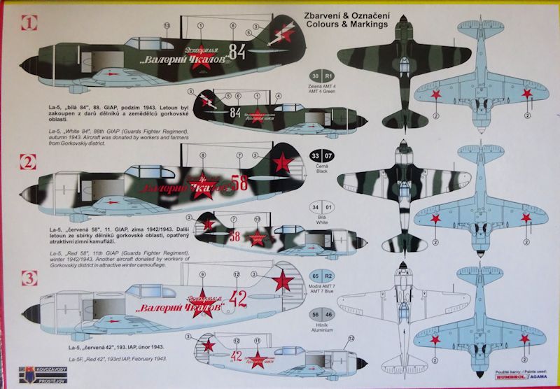 Bauanleitung/ Bemalung: Die Bauanleitung ist ein Rückschritt, die Zusammenfassung von Bauschritten ist zumindest für Einsteiger eine Herausforderung. Der sauber gedruckte Abziehbilderbogen liefert Material für drei Maschinen der "eskadrilja Walerie Tschkalow"