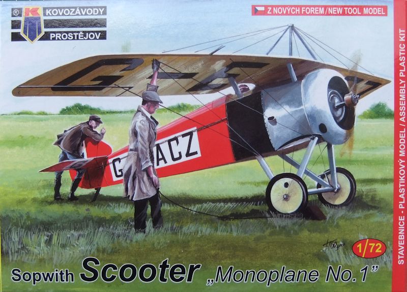Vorbild: Die Sopwith "Scooter" war eine Sopwith "Camel" ohne die unteren Tragflächen. Also, aus einem Doppeldecker, wurde ein Hochdecker konstruiert, ohne dass es einen großen Aufwand für eine Neukonstruktion des gesamten Flugzeuges bedurft hätte. Die obere Tragfläche wurde aber für diesen Typ neu entworfen. Das Hauptmerkmal ist deren auffällige Pfeilung. Auf dem Flügel wurde zudem noch eine pyramidenförmige Verstrebung angebracht, um die Sicherungskabel, oder "RAF" Drähte zu fixieren. Diese sollten der Tragfläche zusätzliche Stabilität geben. Verspannt wurde der Flügel auch nach unten zum Rumpf hin. Die "Scooters" erhielten zum Antrieb einen 130 hp (97KW.) Clerget 9B Neunzylinder Rotationssternmotor. Eine Bewaffnung und die Eingliederung in die britische Luftwaffe, war erst bei dem Nachfolgemuster Sopwith "Swallow" vorgesehen. Die "Scooter" hatte ihren ersten Testflug im Jahre 1918. Weitere Erprobungen als Eindecker Jagdflugzeug folgten. Im April 1921 kaufte Harry Hawker eine Sopwith "Scooter", und flog diese bis zu seinem Tod im Juli desselben Jahres. Die Maschine wurde danach eingelagert und 1925 wieder in Betrieb genommen, wo sie das Publikum auf Flugschauen mit akrobatischen Kunststücken in Atem hielt.