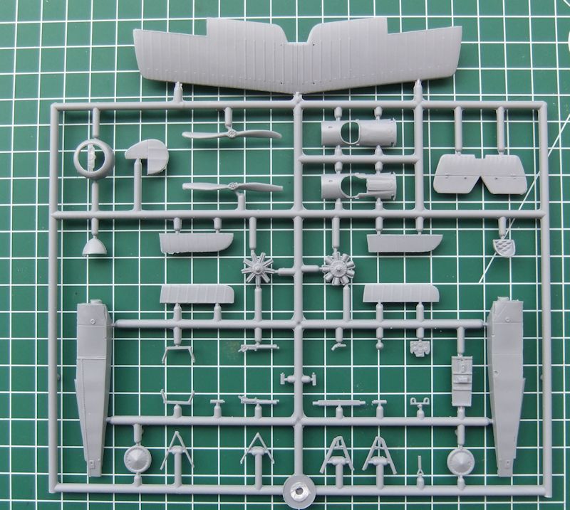 Bausatz: Die "Scooter" ist aus neuer Form. In dem attraktiven Faltkarton befindet sich ein Spritzrahmen mit insgesamt 41 Bauteilen aus grauen Kunststoff. Interessant ist, dass die Teile für die "Swallow" sich ebenfalls an den Rahmen befinden. Die "Scooter" war ja im Prinzip ein Versuchsflugzeug. Die Teile sind in Short-Run Manier gefertigt. Die Strukturen an Rumpf und Tragfläche sowie Leitwerk sind hervorragend gelungen. Mit einem scharfen Skalpell lassen sich die Ruder an dem Leitwerk anritzen, so dass sich diese in angelenkter Position darstellen lassen. Die Querruder liegen separat bei. Das Cockpit geht für den Maßstab und die Einsicht in die kleine Öffnung in Ordnung. Der Windschutz muss selbst angefertigt werden. Ebenfalls sollten die kleinen Ruderhörner für das Leitwerk und die Querruder angefertigt werden.
