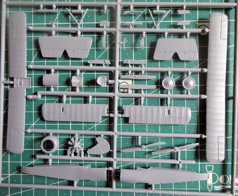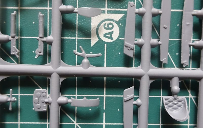 Die rund 30 Teile sind sauber abgespritzt, klar und dezent ausgeführt. Das Cockpit ist ausreichend und die Rumpfinnenseiten gut detailliert. Sitzgurte liegen als Abziehbild bei, warum nicht auch das Instrumentenbrett? Für die Verspannung gibt es eine Zeichnung.