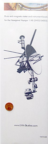 Für das Modell der Raumsonde Voyager hat LVM Studios einen Ätzteilsatz heraus gebrach. Der niederländische Zubehörhersteller hat sich auf Detailsätze für Raumfahrtbausätze spezialisiert und vertreibt diese via Ebay. Die Preise liegen dabei durchaus am oberen Ende des Zubehörsektors.