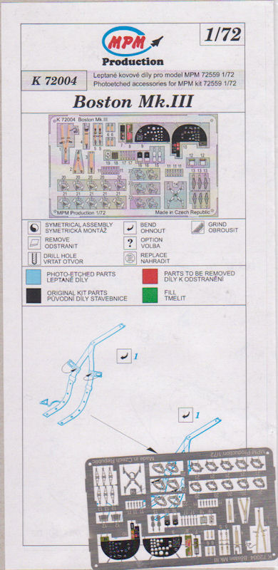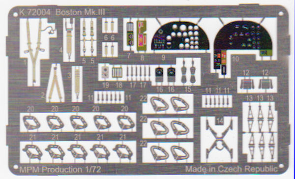 Für den MPM Kit der Douglas Boston Mk. III hat MPM ein Fotoätzteilset für diverse Details herausgebracht. Im Prinzip ist es ein klassisches Zoom-Set. Es ist bei eduard produziert. Dort ist es aber in dieser Form nicht erhältlich.
