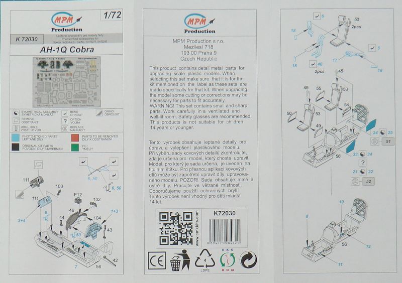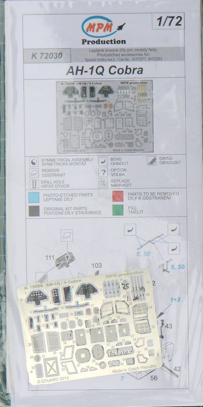 Für die special hobby Bausätze Kit der Bell AH-1 Cobra ein Fotoätzteilset für diverse Details herausgebracht. Im Prinzip ist es ein klassisches Zoom-Set. Es wird bei eduard für MPM produziert. Es ist ein Exklusivprodukt für MPM und eduard hat es daher nicht im Angebot.