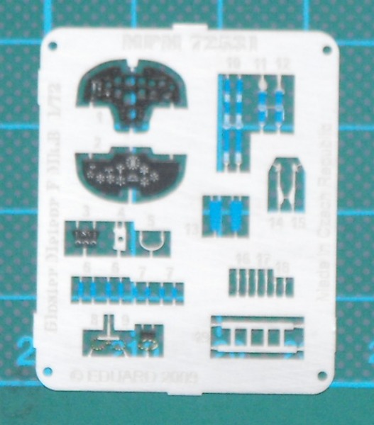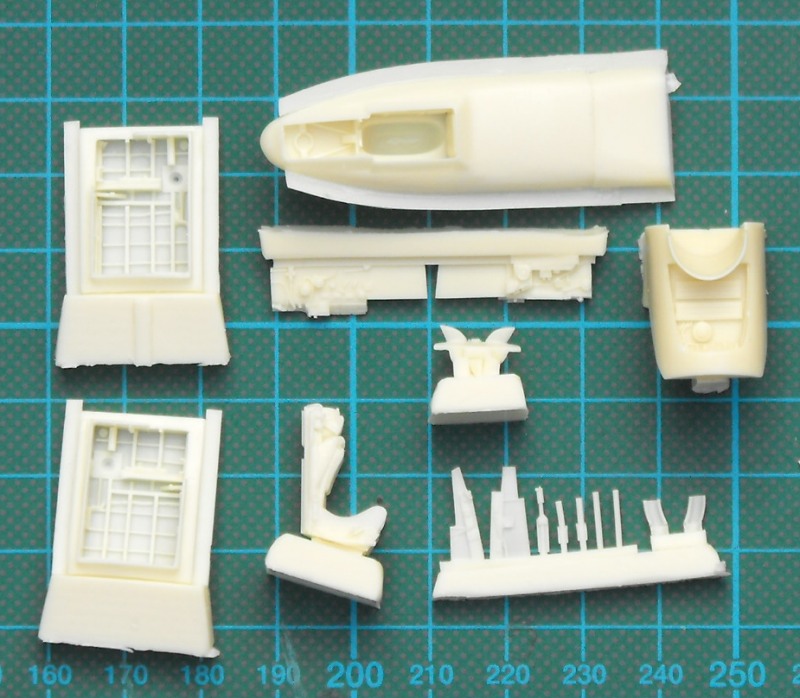 Neu in dieser Kombination sind die farbig bedruckten Fotoätzteile, die Resinteile von CMK für die Fahrwerksschächte, das Cockpit und diverse Kleinteile. Sehr gut gelungen ist der Schleudersitz aus Resin, der mit ein paar Fotoätzteilen veredelt wird.