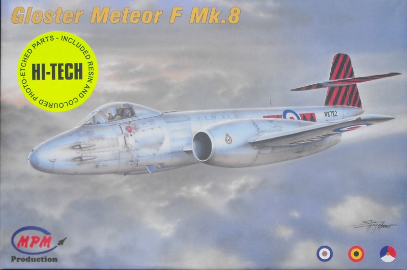 Vorbild: Die Gloster Meteor war das erste von der RAF in Dienst gestellte Strahlflugzeug. Die Meteor F.8 ist eine Weiterentwicklung der noch während des Krieges ersten Serienmaschinen der Meteor. Sie unterscheidet sich deutlich von den ersten Serienversionen durch einen deutlich längeren Rumpf, ein umgestaltetes Leitwerk ohne Bauchflosse, andere Triebwerke und ein verändertes Cockpit.