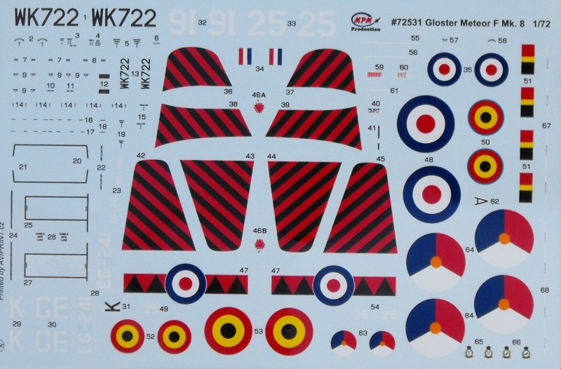 Ansonsten gibt es die bekannten Spritzgussteile und selbst der umfangreiche Decalbogen ist schon bekannt. Er enthält auch eine Menge Wartungshinweise und wurde fehlerfrei bei AVIPRINT gedruckt.