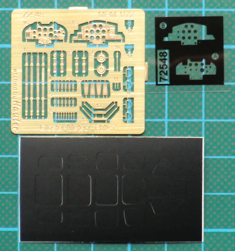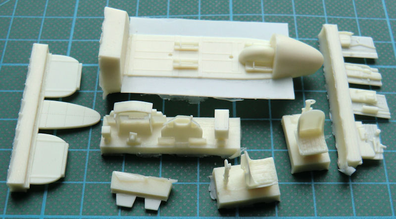 Der Bau beginnt hier mit dem Cockpit. Dazu wird es mittels Resin- und Fotoätzteilen detailliert. So gibt es neben den Sitzgurten auch Resinteile für die Cockpitinnenseiten. Natürlich liefert MPM auch diverse Schalter fürs Cockpit. Die Instrumentenbretter werden jeweils aus vier Teilen aufgebaut. Die Instrumente werden mittels des bemalten Fotofilms dargestellt.