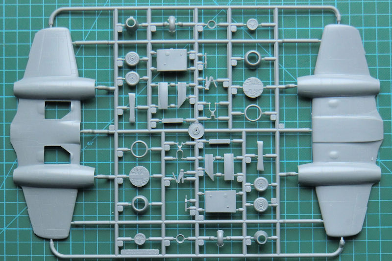 Im praktischen Stülpkarton befinden sich gut verpackt zwei hellgraue Spritzlinge mit 79 Teilen, 16 Reinteile einen Fotoätzteilbogen sowie zwei Klarsichtteile, einen Fotofilm, schwarze Masken und die Bauanleitung. Die Detaillierung ist sehr gut. Dazu tragen auch die Resin- und Fotoätzteile bei. Es gibt feine versenkte Strukturen.
