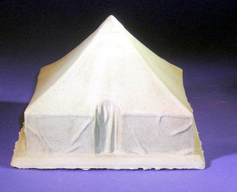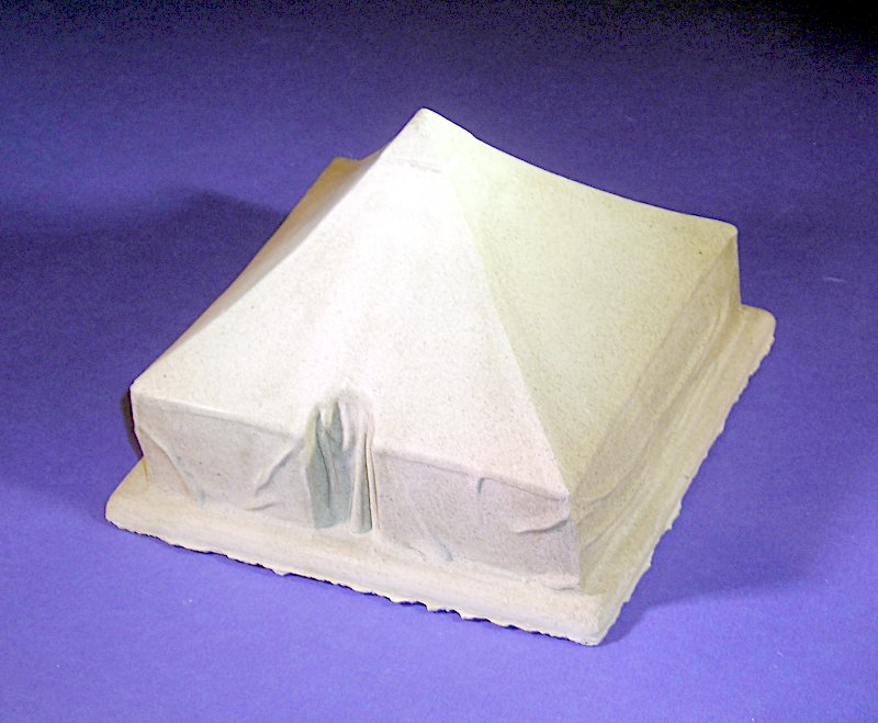 Bei einem kürzlichen Besuch bei Marc Toillié konnte ich neben bekannten Produkten auch einige Neuheiten in Augenschein nehmen. Das quadratische Zelt (ca. 11x11x8 cm) gehört zu diesen. Wie Marks bisherige Produkte ist es in einem mit keramischen Anteilen versetzten Acryl-Gießkunststoff gefertigt. Für diese erste Serie hat er dasselbe Material wie für die Betonplatten genommen.