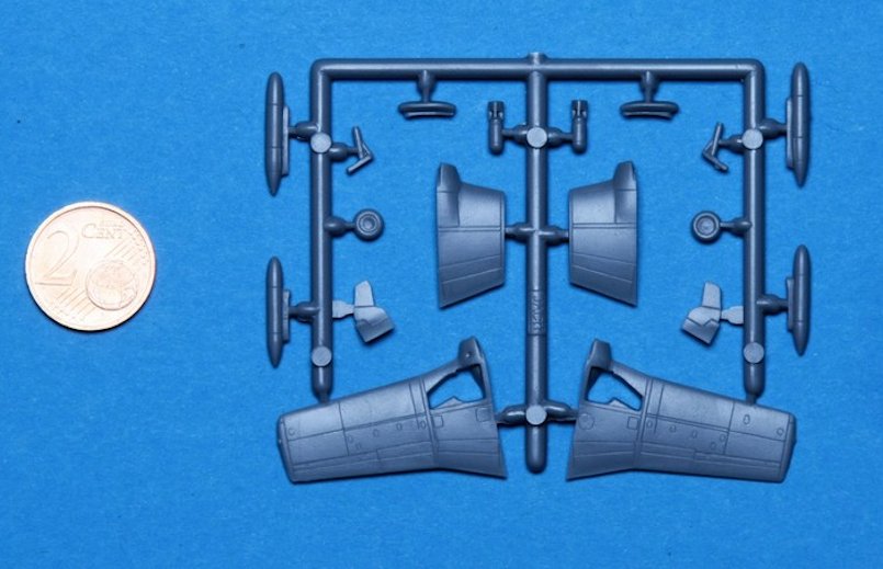 Die Aufteilung der Teile entspricht der üblichen Praxis und wurde so gewählt, dass alle Trag- und Steuerfläche eine einteilige, schöne scharfe Hinterkante haben. Die Gravuren sind sehr fein und gleichmäßig gestaltet. Das Cockpit besteht aus einer Wanne, den ausreichend detaillierten Sitzen und den Instrumentenpanelen. Für diese liegen Abziehbilder bei. Damit entsteht schon ein recht ansprechendes Cockpit. Wer will, kann noch Steuerknüppel und Gurte nachrüsten. Inwieweit diese im hauseigenen Detailing Set enthalten sind, konnte ich leider noch nicht feststellen.
