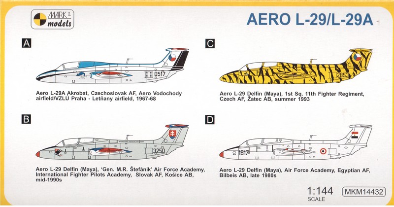 Vorbild: Die Aero L-29 Delfín (NATO-Codename "Maya") war in den 1960er-Jahren das Standardstrahlschulflugzeug der Staaten des Warschauer Vertrages und ihrer Verbündeten. Der freitragende Mitteldecker in Ganzmetallhalbschalenbauweise mit kreisförmigem Rumpfquerschnitt hatte ein T-Leitwerk und gerade Tragflächen mit einen Hauptholm. An Außenlaststationen konnten zwei Zusatztanks mitgeführt werden, die die Reichweite der Maschine um 254 Kilometer vergrößerten. Alternativ war an den Trägern das Mitführen von 100kg Freifallbomben oder Raketenbehältern möglich. Das einfach bereifte Bugradfahrwerk war gefedert und vollständig einziehbar. Die Projektierungsarbeiten wurden von Karel Tomaš und Zdenek Rublic durchgeführt und begannen 1955. Der Erstflug des Prototyps XL-29 (Kennung: OK-70) fand am 5. April 1959 mit Rudolf Duchon am Steur statt.