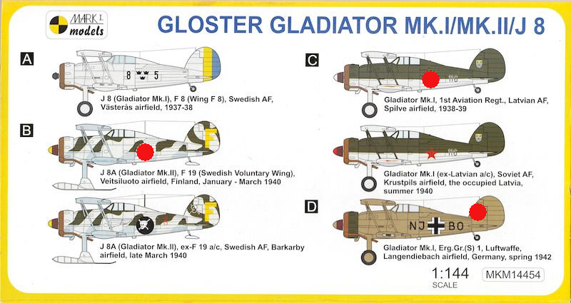 Schweden erwarb eine Fertigungslizenz und produzierte die Flugzeuge unter der Bezeichnung J8 (entspricht Gladiator Mk I) und J8A (Gladiator Mk II).