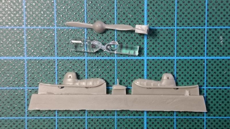 Modell: Ein Multimediabausatz, wie es neudeutsch heißt. Er ist in verschiedenen Varianten bereits auf dem Markt gewesen. Die wesentliche Struktur ist ein sauber gegossener Spritzguss mit feinen Strukturen. Die Stoffbespannung ist gut, aber maßstabsgerecht zu erkennen. Das Plastik würde für eine "normale" Version ausreichen, einschließlich dem Dreiblattpropeller. Die Cockpithaube ist ein Klarsichtteil und in Resin wurden ein Zweiblatt-Propeller und Schneeschuhe dazu getan, um die beabsichtigten Versionen darstellen zu können. Die Decals sind übliche Nassschiebebilder, auf der Kartonrückseite befinden sich Darstellungen aller beklebbaren Versionen.