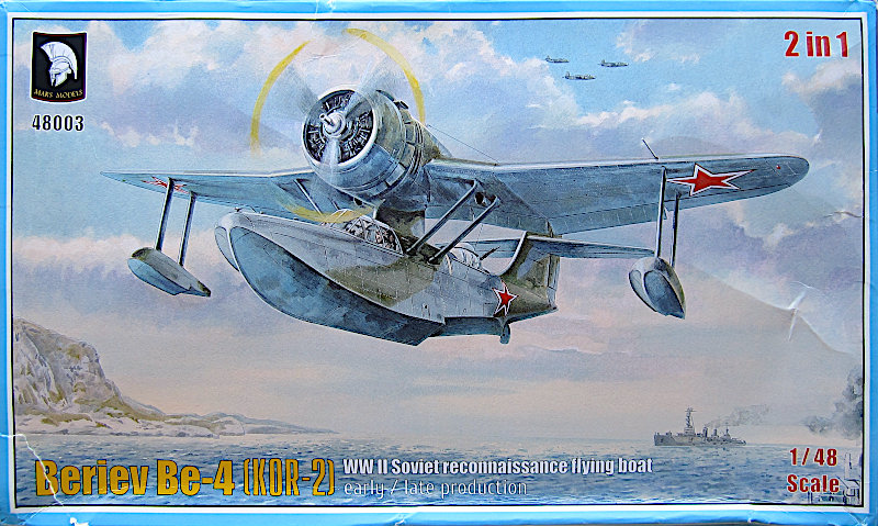 Vorbild: Die sowjetische Berijew Be-4 (auch KOR-2) ist ein einmotoriges, katapultierfähiges Flugboot aus der Zeit des Zweiten Weltkrieges. Die Be-4 besaß einen zweistufig gekielten Rumpf in Ganzmetallbauweise. Das Triebwerk M-62 befand sich auf einem Pylon oberhalb der Pilotenkanzel. Der Tragflügel war abgeknickt und besaß pro Seite einen einstufig gekielten Stützschwimmer. Sie fand Verwendung als Bordaufklärungsflugzeug bei den Kreuzern und Schlachtschiffen der sowjetischen Schwarzmeerflotte.