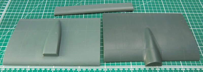 Die Resinteile sind zwar sauber gegossen und allerdings müssen diese z.T. noch aus einer Haut befreit werden. Sie bedürfen auch ein bisschen Nacharbeit. Das Tragflächenmittelstück ist sehr massiv. Trotzdem sollte man dieses mit den beiden Rümpfen mittels stabilen Holm verbinden. Master-X liefert noch vier Zusatztanks nebst Aufhängungen.