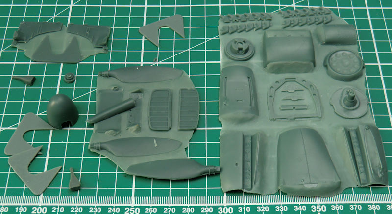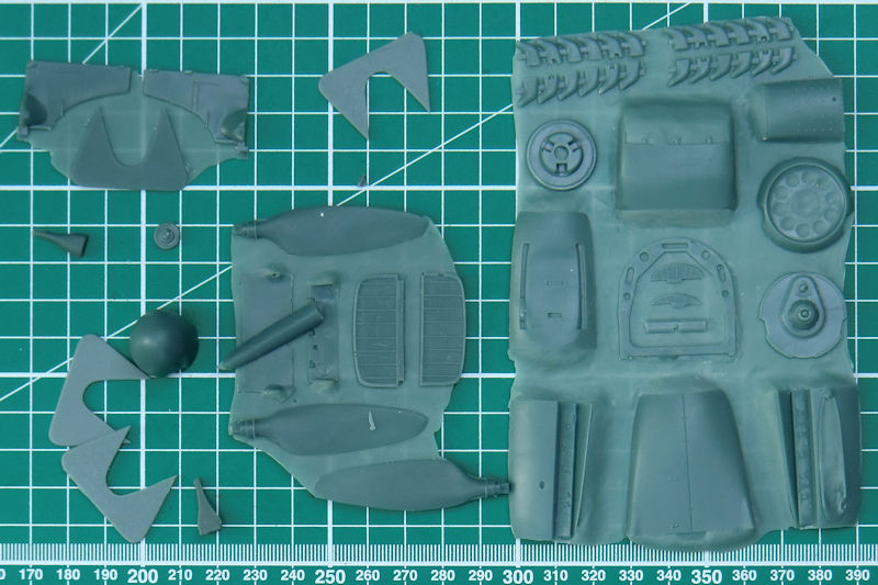 Master-X liefert in einem stabilen Karton 46 sauber gegossene Resinteile, ein Decalbogen und die Bau- und Bemalungsanleitung.